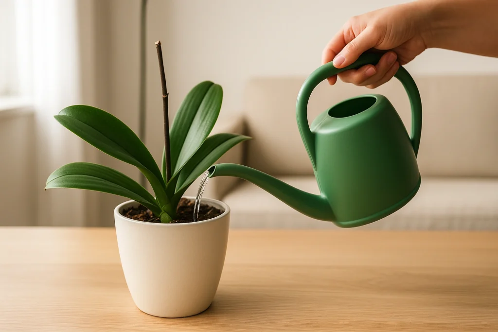 花が咲き終わった胡蝶蘭は見た目の華やかさを失いますが、株自体はまだ成長を続けています。この時期の水やりで大切なのは、過湿を避けながら根に必要な水分を届けることです。