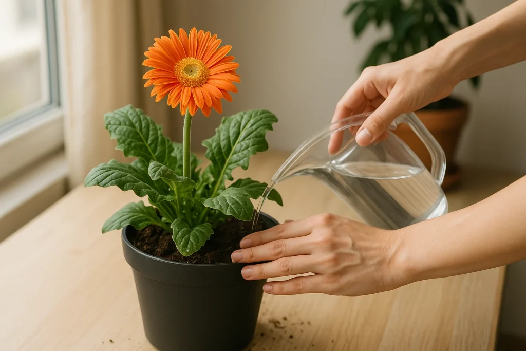 こうして鉢と土の環境を最適化することで、ガーベラの根はしっかりと呼吸でき、枯れにくく長生きする植物へと育てられます。